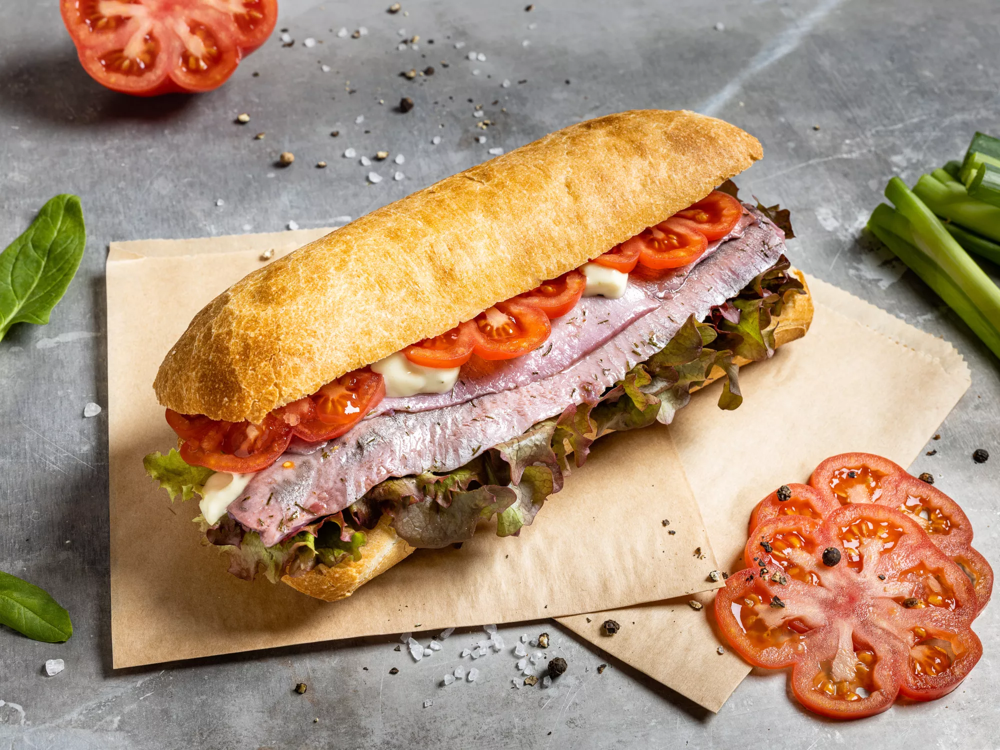 Ciabatta Brötchen mit der oberen Hälfte schließen.